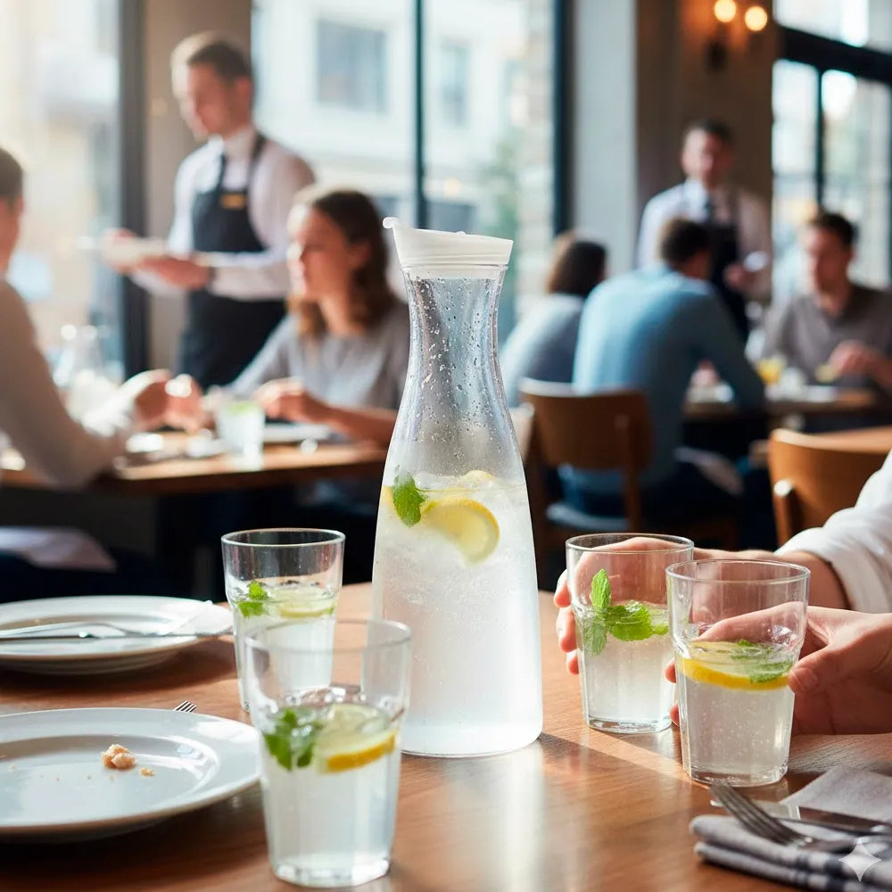 O jarro em PC com tampa de 1L, com medidas Ø 6,5×27 cm e fabricada em policarbonato transparente, é um acessório prático, resistente e versátil, ideal para servir e conservar bebidas em hotelaria, catering, coletividades ou em casa. O seu design estilizado e funcional permite um derramamento confortável e preciso, enquanto a tampa incluída protege o conteúdo contra derramamentos, impurezas ou contaminações externas, garantindo maior higiene e segurança. O material de policarbonato, leve mas altamente resistente a impactos e quedas, torna esta jarra uma alternativa segura ao vidro, especialmente em ambientes de grande uso ou com alta rotatividade de clientes.