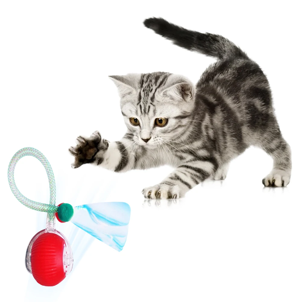 Cat Interactive Ball Automatic Rolling Ball Fake Tail Rechargeable Electric Pet Dog Cat Toy Fake Tail Training Imitate Mouse Toy