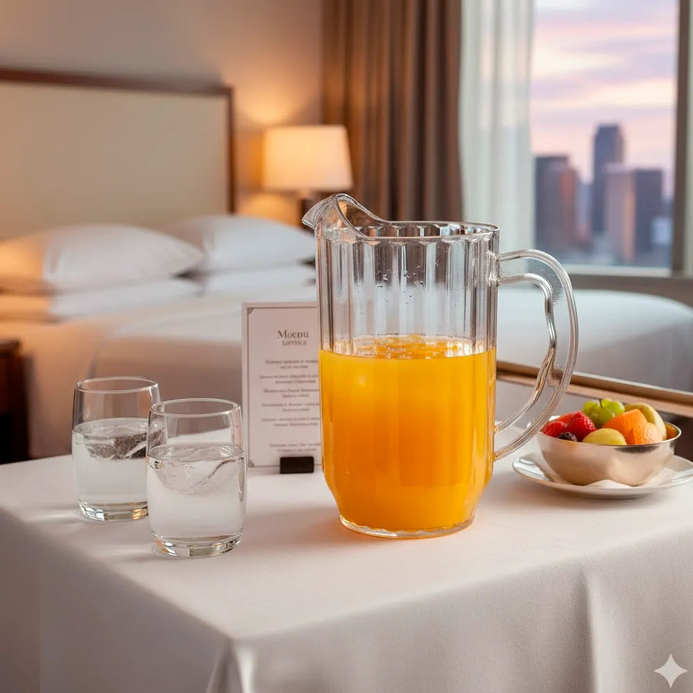 O jarro PC 1,8L combina transparência cristalina e elevada resistência ao impacto. Além disso, a pega ergonómica e o bico estável simplificam o serviço. A peça garante contacto alimentar seguro e lava na máquina sem perder brilho. Por isso, adapta-se a hotéis, restauração, catering e uso doméstico.