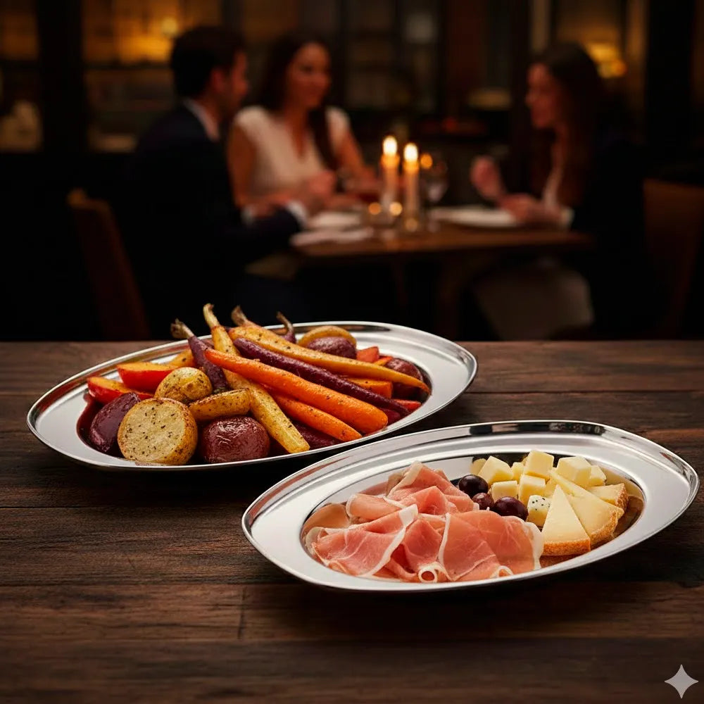 Prática, resistente e elegante, esta travessa oval funda em inox é ideal para servir alimentos de forma funcional e higiénica, tanto em ambientes domésticos como profissionais. Com 17cm de comprimento e 11cm de largura, é perfeita para porções individuais ou acompanhamentos em cafés, restaurantes, cantinas, buffets e refeitórios.