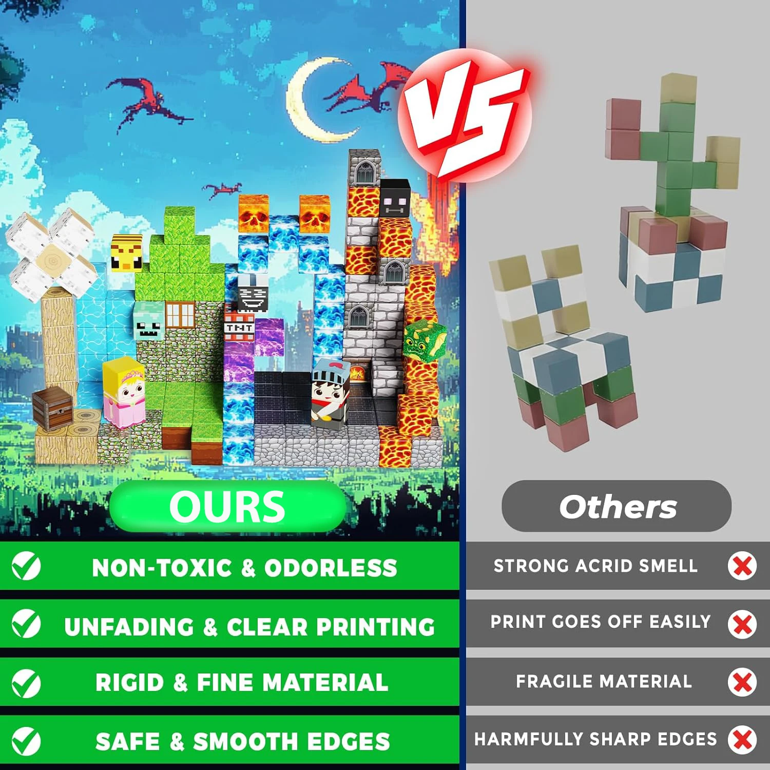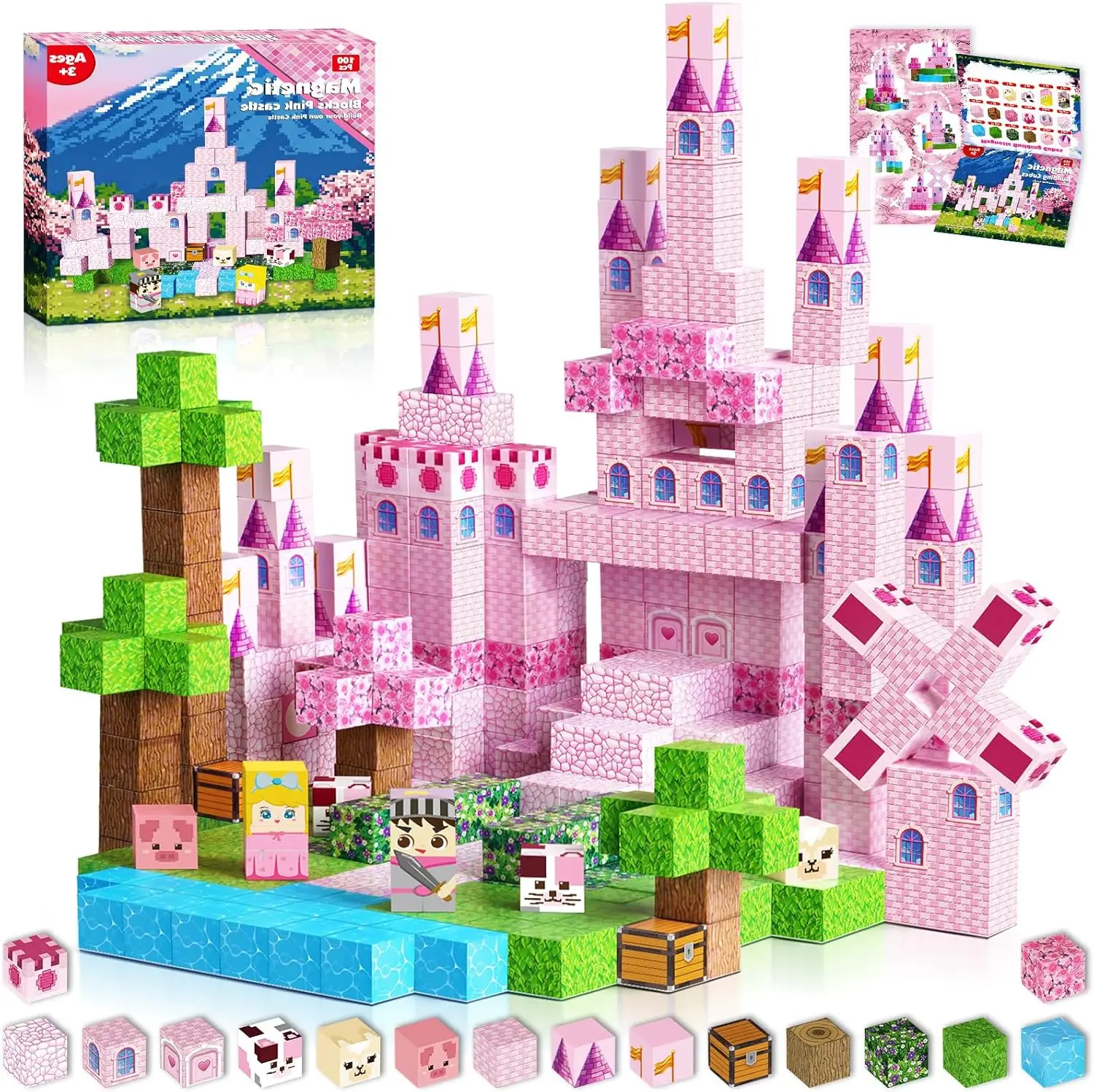 Conjunto de 100 Peças de Blocos de Construção Magnéticos - Cubos Magnéticos Empilháveis, Estradas com Carros, STEM Montessori